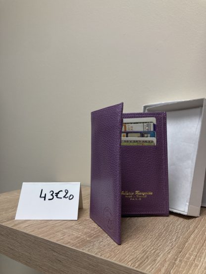 Magnifique porte feuille en cuir violet  Sellerie Française